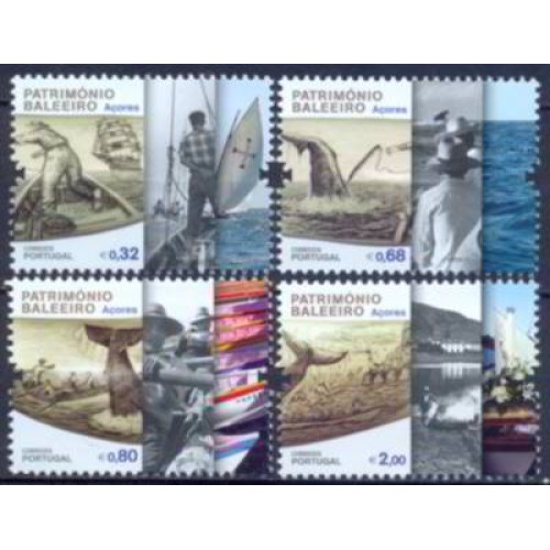 Etiquetas: aCo0561m-sErie patrimOnio baleeiro - aCores - 2011 - mint, mamiferos, navios e assemelhados, peixes e fauna marinha