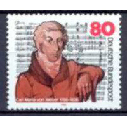 ALF1116N-SELO BICENTENÁRIO DE NASCIMENTO DO COMPOSITOR CARL MARIA VON WEBER - ALEMANHA FEDERAL - 1986 - N
