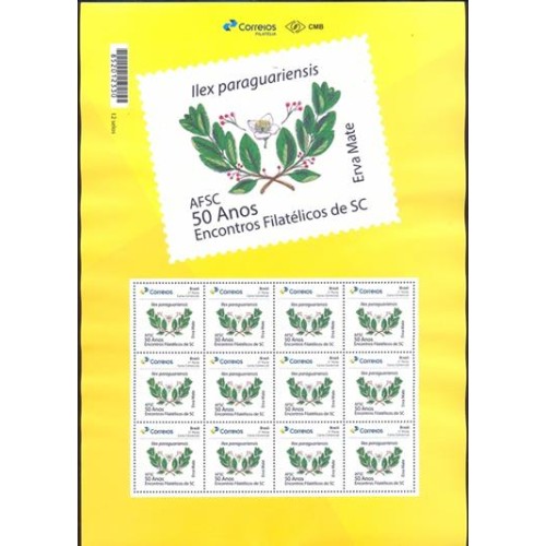 Etiquetas: pb0121mf-folha personalizado 50 anos encontros filatElicos de sc - erva mate, gomado - 2019 - mint, basicos, filatelia, flora, personalizados