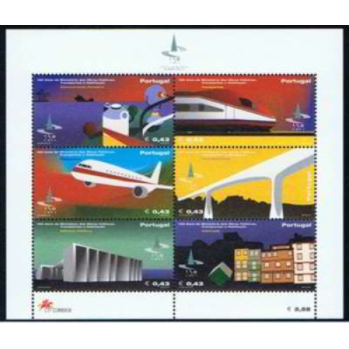 Etiquetas: porb184m-bloco 150 anos do ministErio das obras pUblicas, transportes e habitaCAo - portugal - 2002 - mint, arquitetura, engenharia e edificacoes, aviacao, Orgaos de governo, pontes e viadutos, trens e transportes ferroviarios