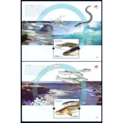 Etiquetas: porb316m-sErie 2 blocos peixes migradores - portugal - 2011 - mint, peixes e fauna marinha