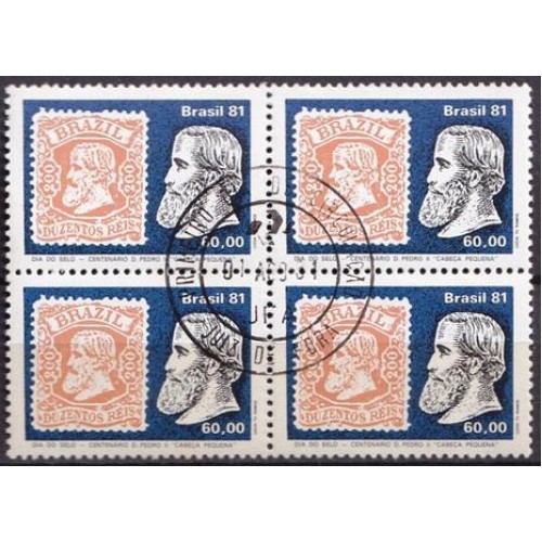 QC1212.02-QUADRA DIA DO SELO - CENTENÁRIO DA EMISSÃO CABEÇA PEQUENA, 200 RÉIS - 1981 - CPD JUIZ DE FORA